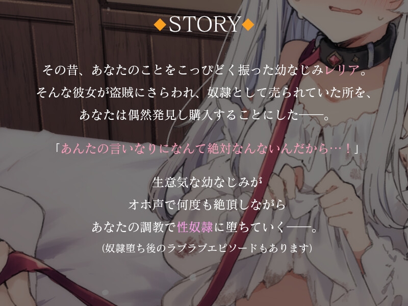 僕のことが大嫌いな幼なじみを快楽調教でオホ声メス奴○化 嫌がりながらも連続アクメの快感に堕ちていく BDSM作品(DLサイト編) X Facebook はてブ LINE コピー 2025.08.15 DLサイトでダウンロード サンプルCV ASMRバイノーラル作品:収録約1時間30分 昔振られた女の子との再会は山賊にさらわれ奴隷にされた姿。彼女を買い取った貴方は彼女を性奴隷にすべく調教を施す。生意気な彼女は抵抗するが、巧みな性の調教に身も心も奴隷として堕ちてイキ、従順なアクメ奴隷に